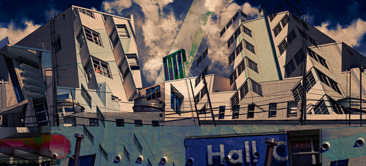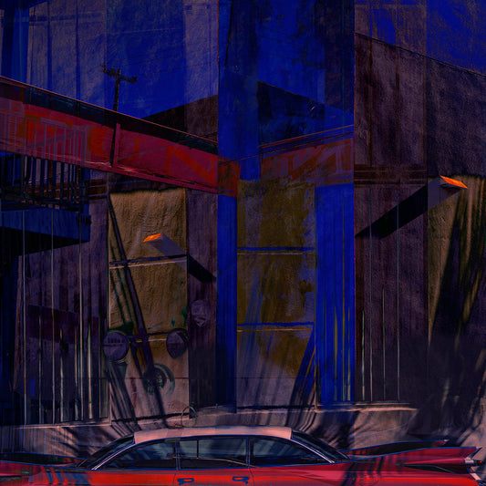 The Architecture Inspired Collection is a photographic deconstruction of the built world; seeing structures, buildings, and public spaces not merely as objects, but as silent, monumental characters, witnesses to the unwritten history of urban life. This series continues Lev's complex, signature process of layering countless photographs, allowing multiple moments in time and memory to coexist and reimagining familiar sites like the fictional roadside stop, Service Area #1, or the nostalgic, solitary view, I Met Edward Hopper Parallel Parking, into highly charged, new realities.