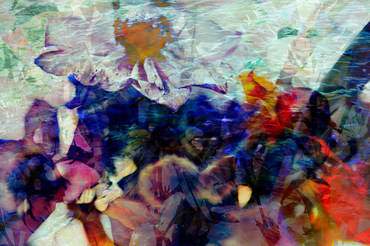 The mutability of memory. A visually serene yet deeply contemplative series exploring the essential nature of memory. These pieces are combined with the literal and symbolic presence of water, a technique that visually layers the flowers with water. This fluid process mirrors how our memory works. As we grow older and gather new experiences, our recollections are in a constant state of flux. These works suggests that no memory is ever truly remembered exactly as it happened; instead, each artwork captures the beautiful, evolving, and slightly shifting truth of a moment held in the mind's eye.