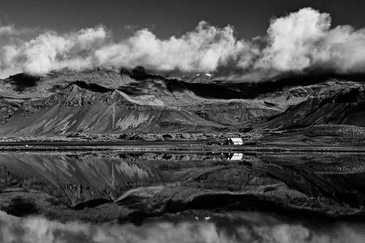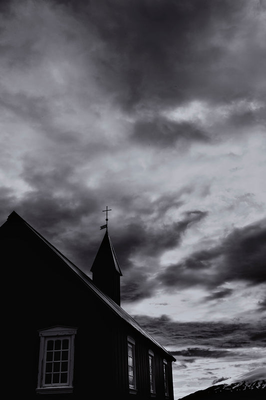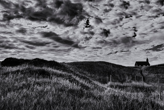 This series strips away color and forces the viewer to confront the raw geometry and profound emotional weight of both the earth and the structures built upon it. By eliminating the visual chaos of the modern palette these works achieve a timeless psychological clarity. The resulting images are deeply atmospheric transforming simple architectural scenes like Little House or monumental forms like Black Church into enduring visual icons defined purely by light and shadow.