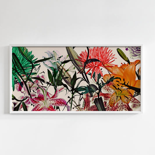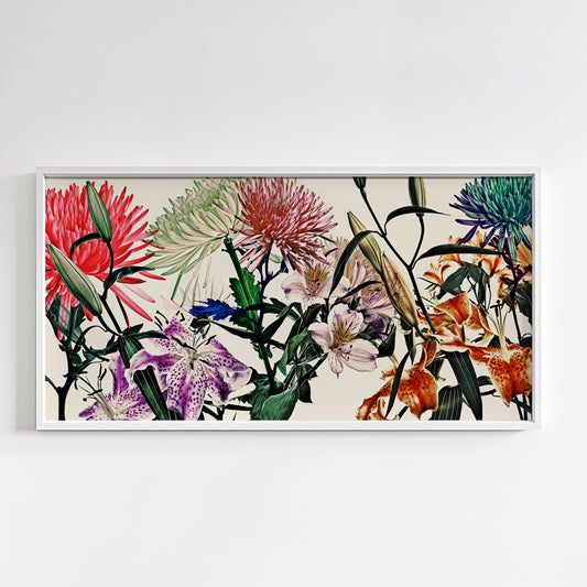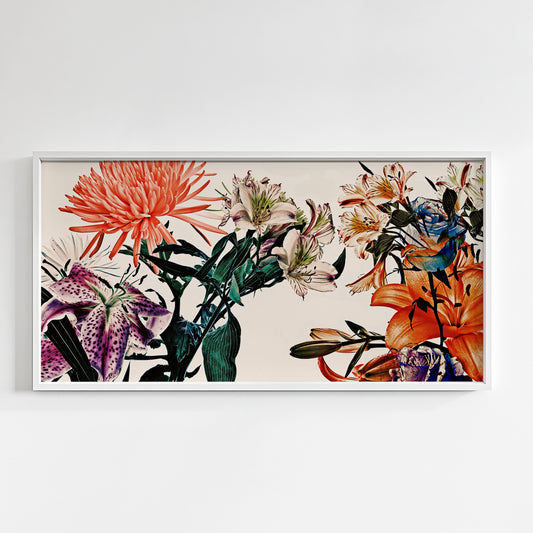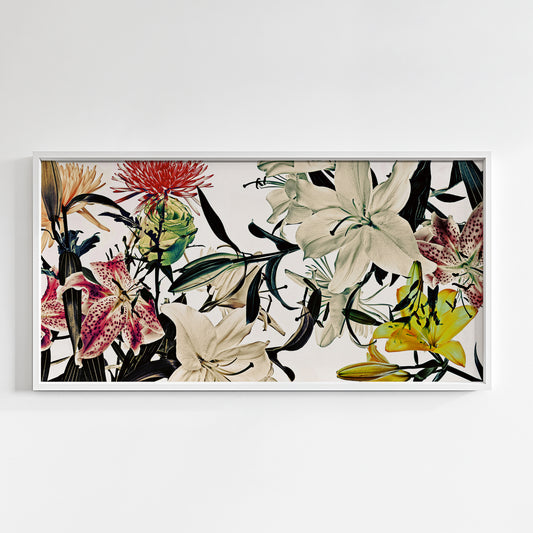 This is an immersive study of scale, transforming the intimate subject of white flowers into a sweeping, monumental environment. By utilizing the wide, panoramic format, this series delivers more than a view; it creates an unobstructed, experience where the fragility of the bloom meets the grandeur of a vast canvas. Lev constructs powerful compositions that blend meticulous detail with immense scope, forcing the viewer into a deep, meditative engagement with natural beauty and the intensity of light and form.