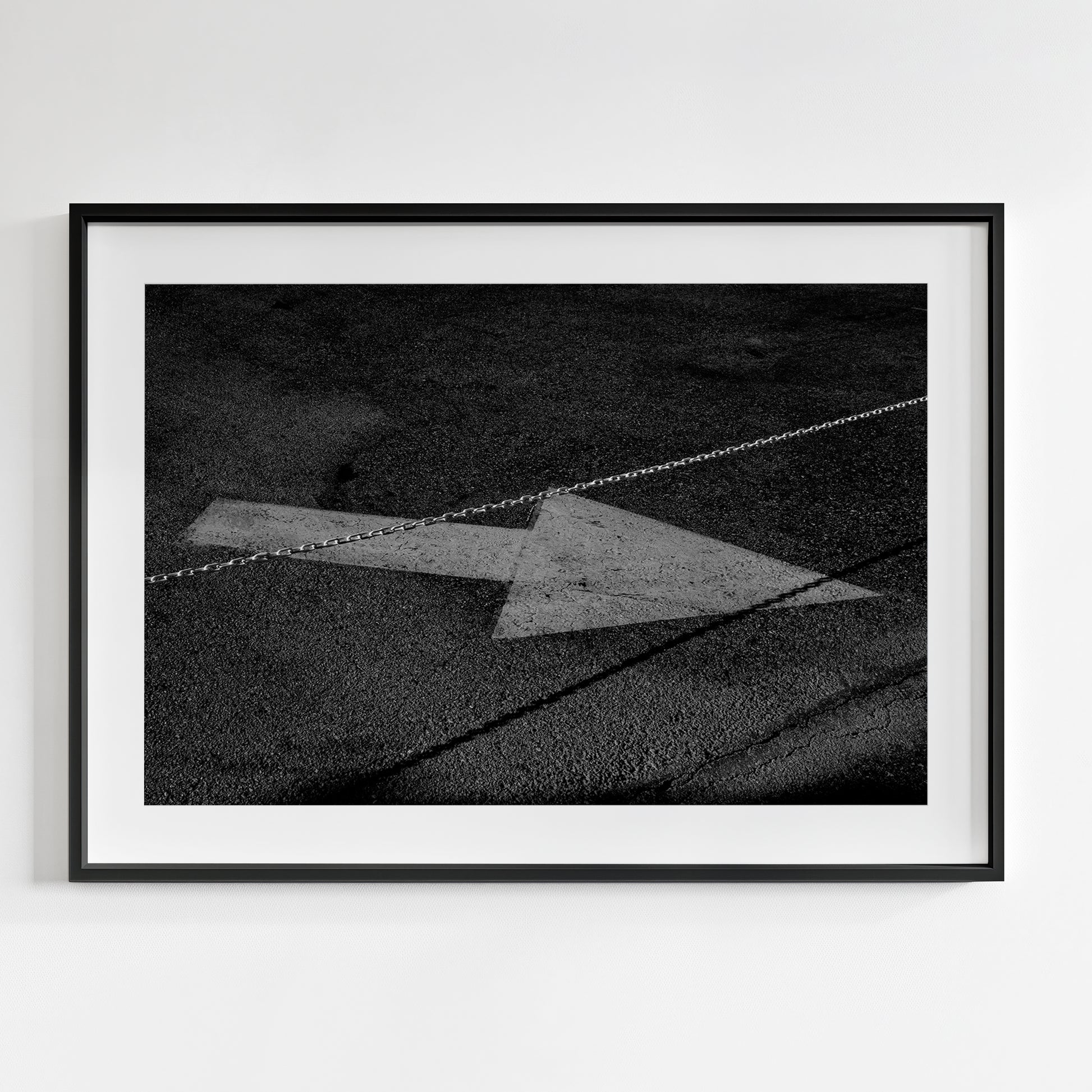 The composition is a stark visual tension between two fundamental symbolic forces: the arrow, representing decisive, linear movement and ambition, and the chain, representing the inevitable weight of gravity, history, or restriction. Rendered in powerful black and white, the image elevates these two forms into an existential pairing. Lev suggests that every forward path or act of will carries the structural weight of its own limitation, creating a complex narrative where true freedom is found not in escaping the chain, but in accepting the profound, necessary tension between the two elements.