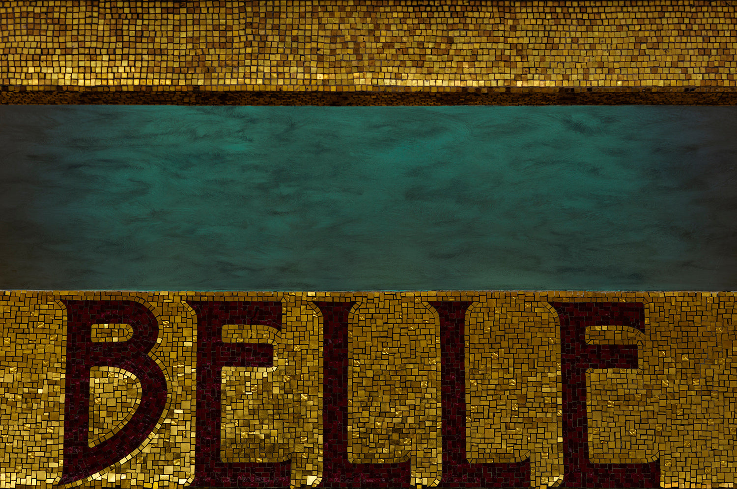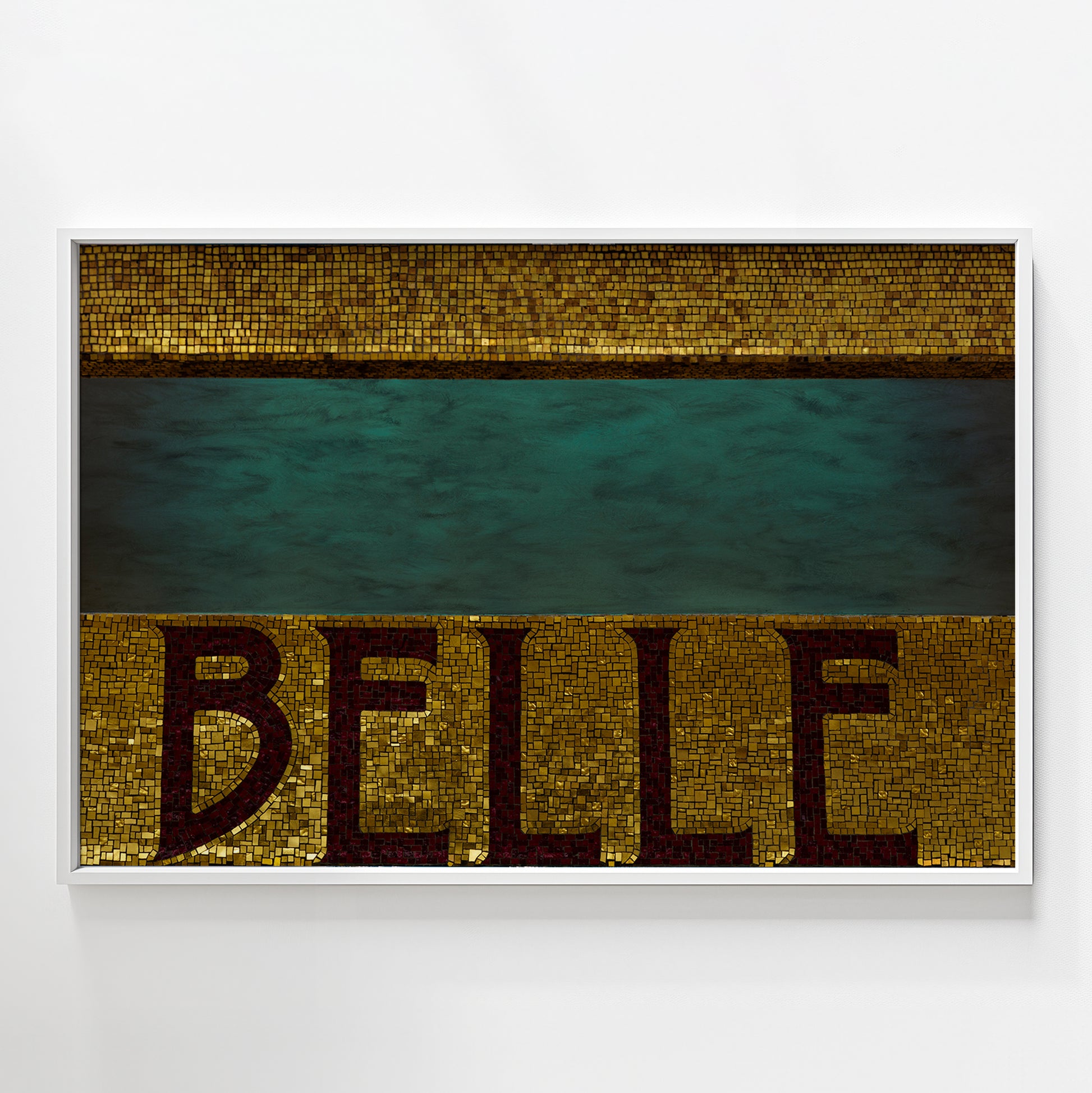 "Beautiful People" is an observation of public space in Italy, referencing the Italian word for beauty. The Art Deco sign, "Belle", suggests that the expectation of beauty is not just modern pressure, but a long-standing human obsession. This piece questions what "beautiful people" truly means, showing beauty as an ancient, relentless commodity in a world saturated by quick information.