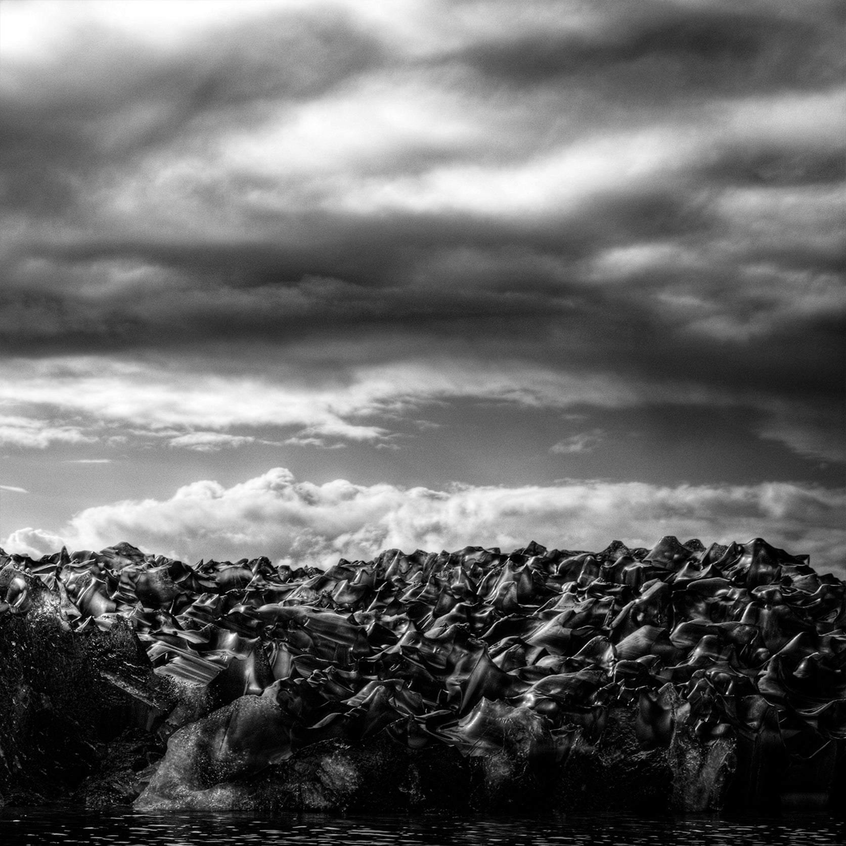 This work is from a month-long expedition which took Lev to Northern Europe. You are looking at an iceberg Lev photographed in Iceland, instantly rooting the dramatic visual in fact. The deep black color is caused by thousand year old volcanic ash embedded within the ancient ice. The piece transforms this geological fact into a monumental visual metaphor, emphasizing the geometric tension between the sharp bright edges and the vast consuming black mass. The work asserts that the true power and profound depth of any structure or experience lies in the contained, unseen history it carries.