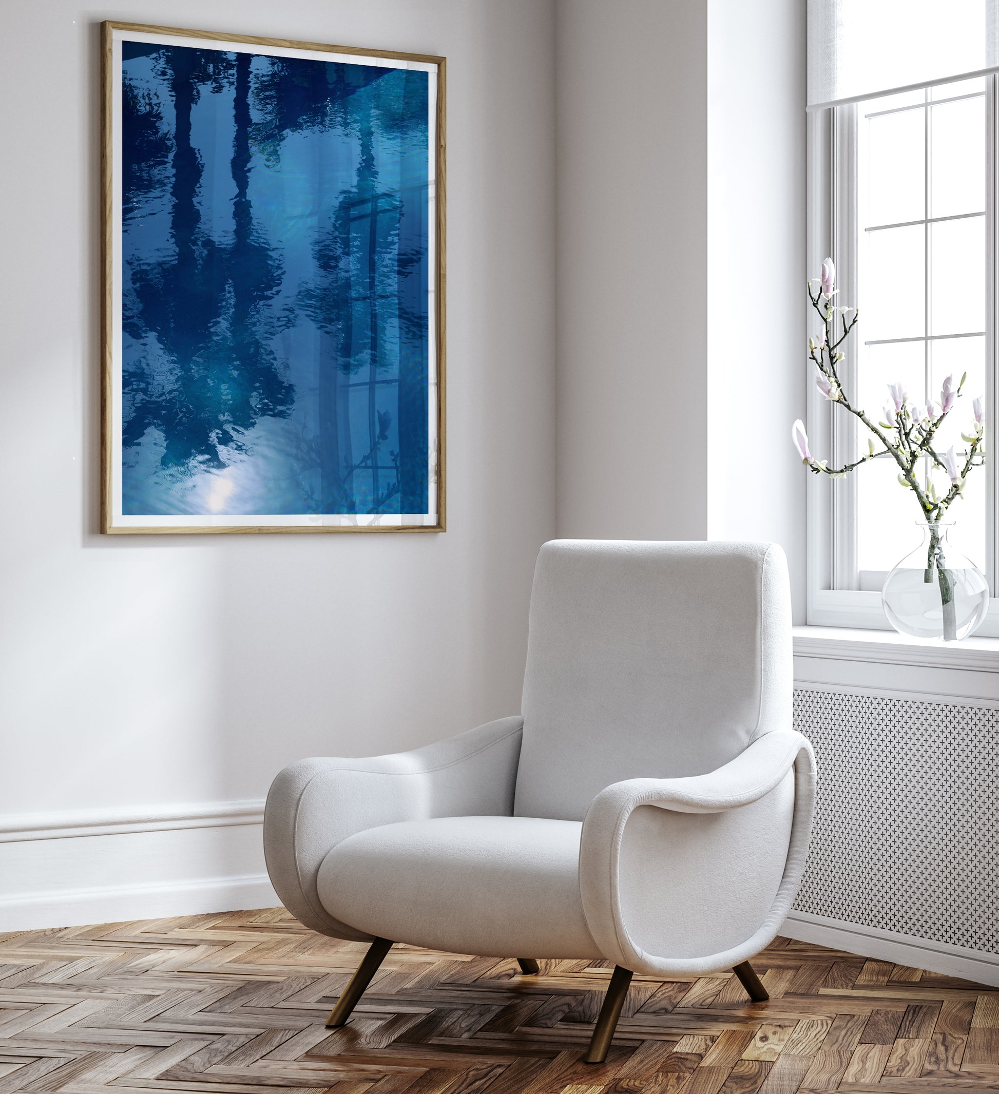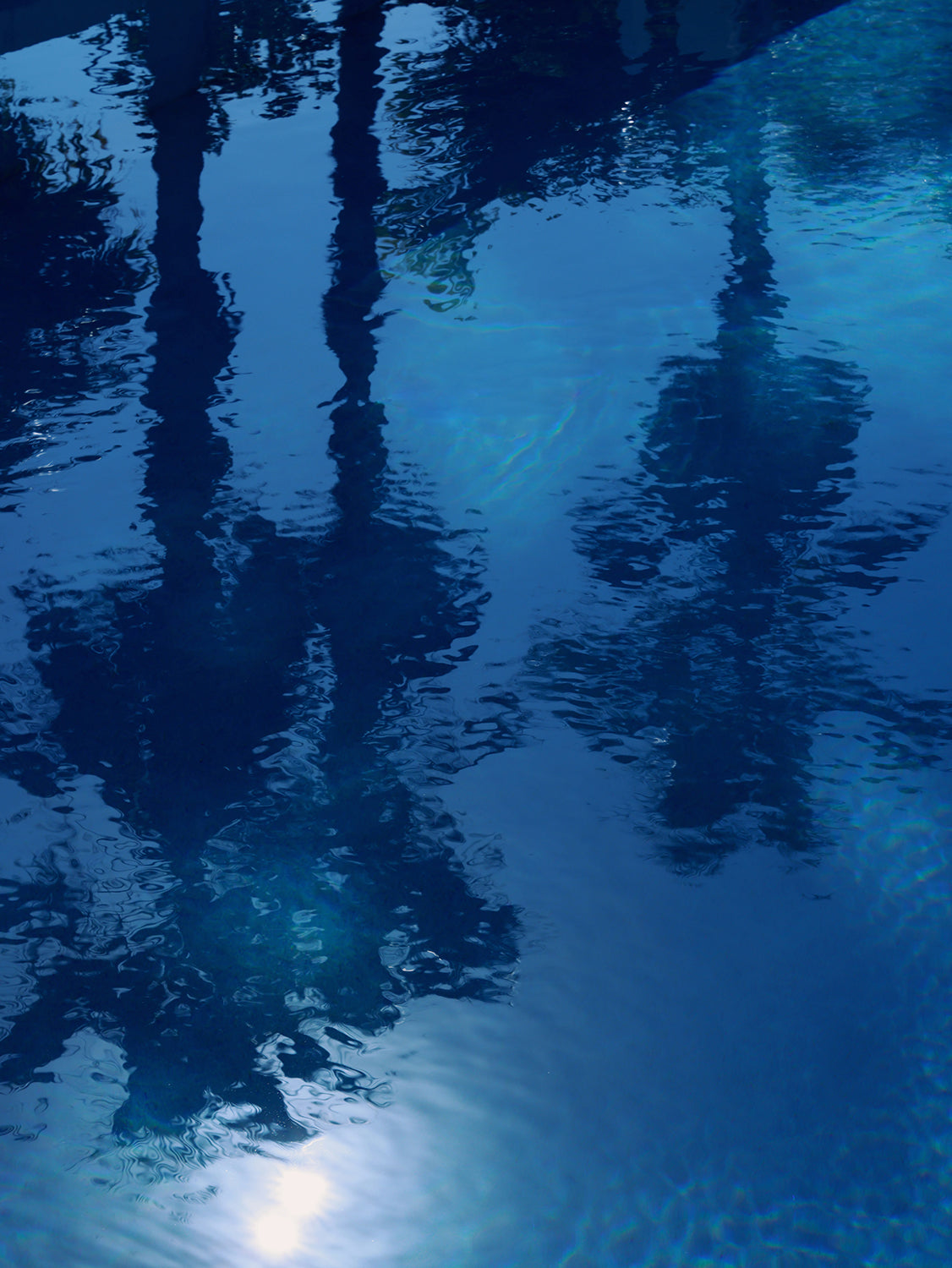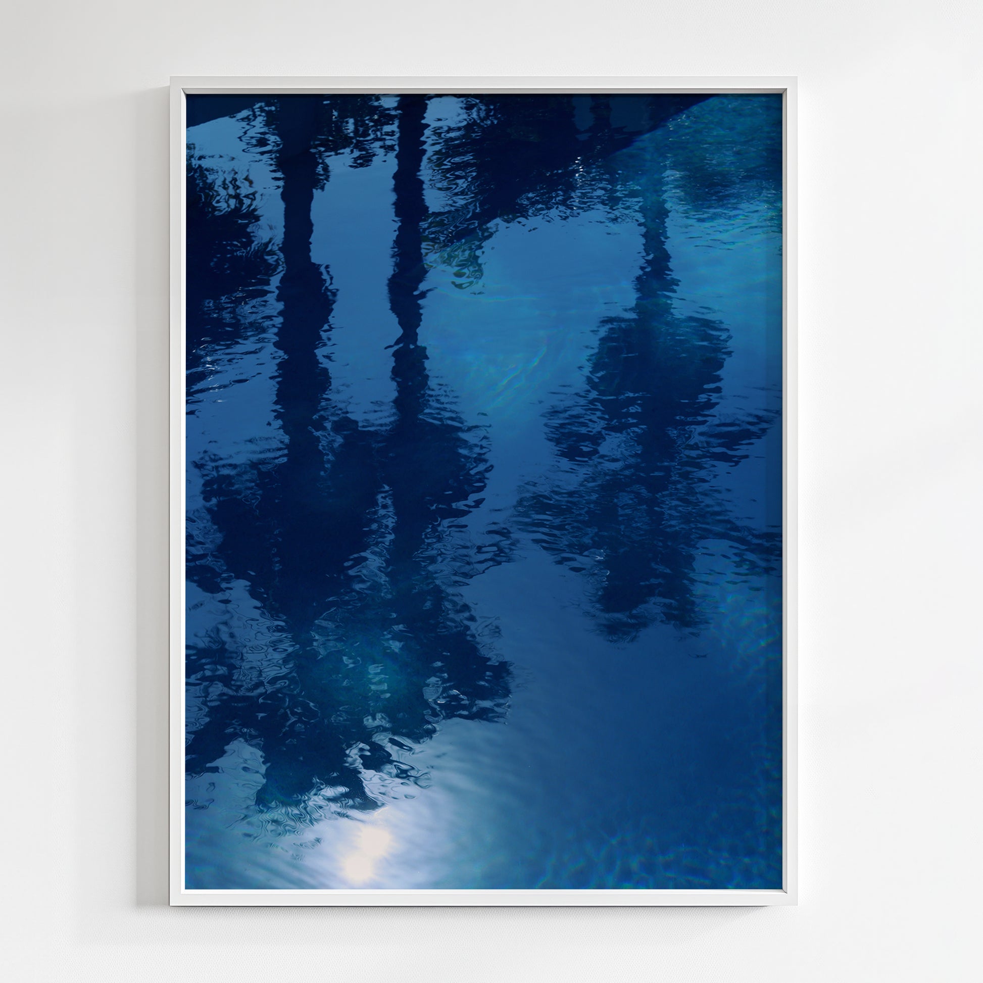 "Blue Palms On Collins" is a moody piece that documents a pivotal, life-changing trip for the artist. Lev was invited to Miami for a fun weekend with a girl he was dating. But on Collins Avenue, where she lived, he fell deeply in love with her and momentary desire became his destiny. The striking blue palm trees are seen as reflections in the water, appearing upside down, symbolizing the "head over heels" feeling of falling in love. Lev embeds the memory of the woman who would eventually become his wife into the myth of Miami, preserving the moment the world turned wonderfully upside down.