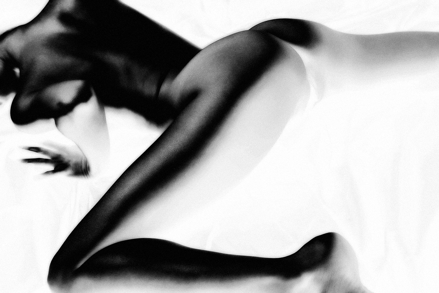 "Dancing In The White" is a deliberate, erotic celebration of the naked female body, an uncompromising act of exposure and aesthetic provocation. This series employs a modern, audacious interpretation of Man Ray's photographic solarization technique, where the reversal of tones does more than just abstract the image, it radicalizes it.
