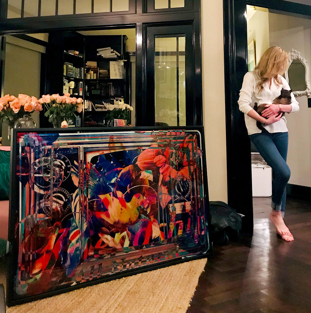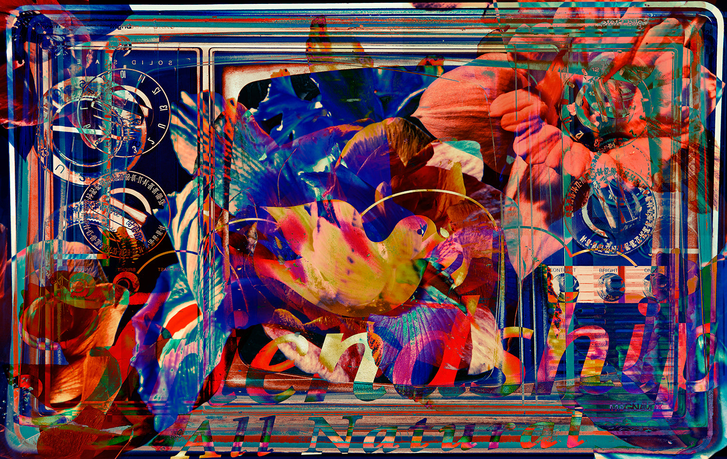 This series is an unedited, adrenaline-fueled conversation with chaos; a direct commentary on how completely we are immersed in pop culture. The pieces race a thousand miles a minute from the subconscious and explode into our conscious. Lev layers hundreds of carefully selected photographs to create vibrant cross-sections of the modern psyche, a dense architectural mapping of thought and digital noise.