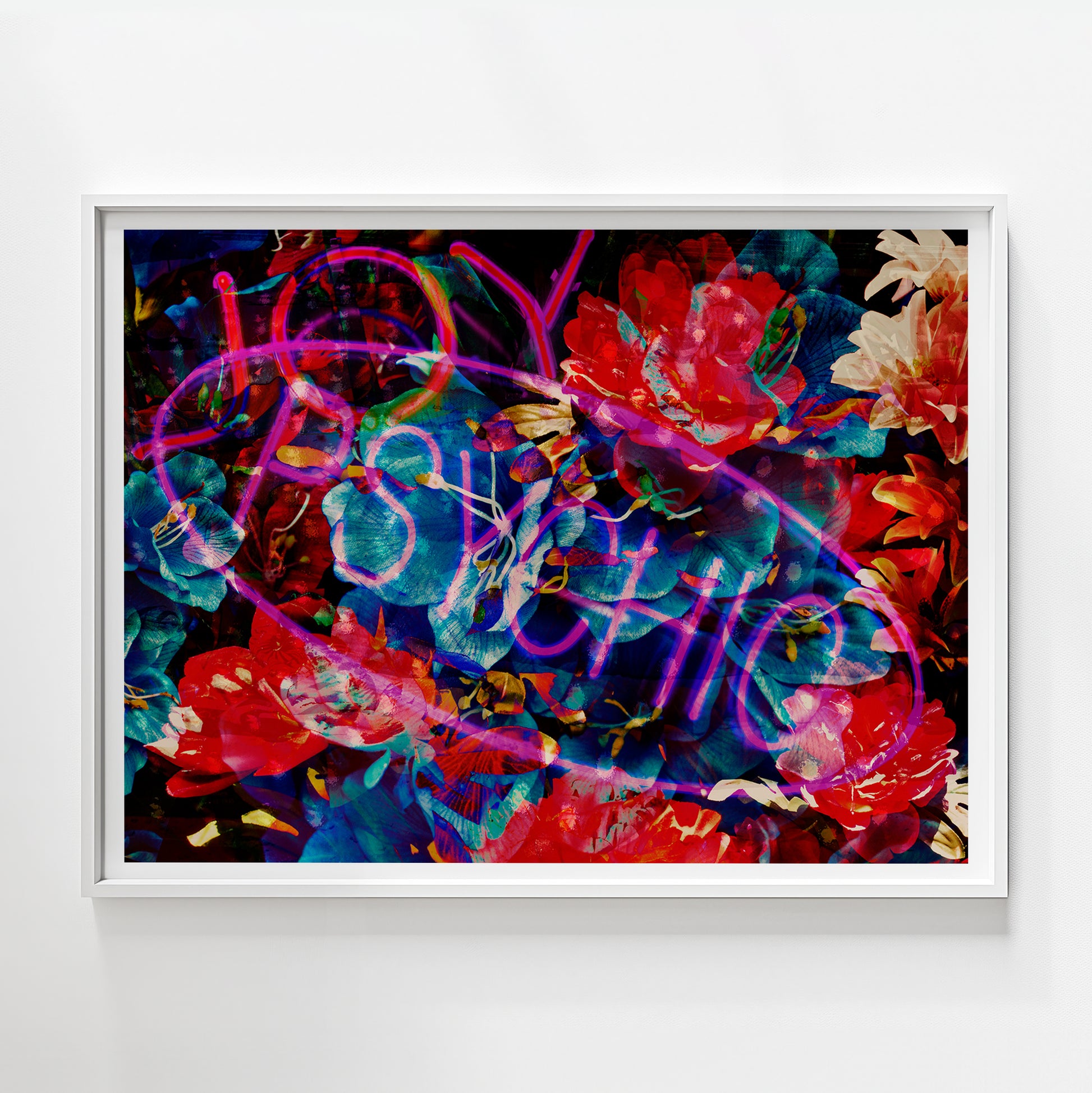 This series is an unedited, adrenaline-fueled conversation with chaos; a direct commentary on how completely we are immersed in pop culture. The pieces race a thousand miles a minute from the subconscious and explode into our conscious. Lev layers hundreds of carefully selected photographs to create vibrant cross-sections of the modern psyche, a dense architectural mapping of thought and digital noise.