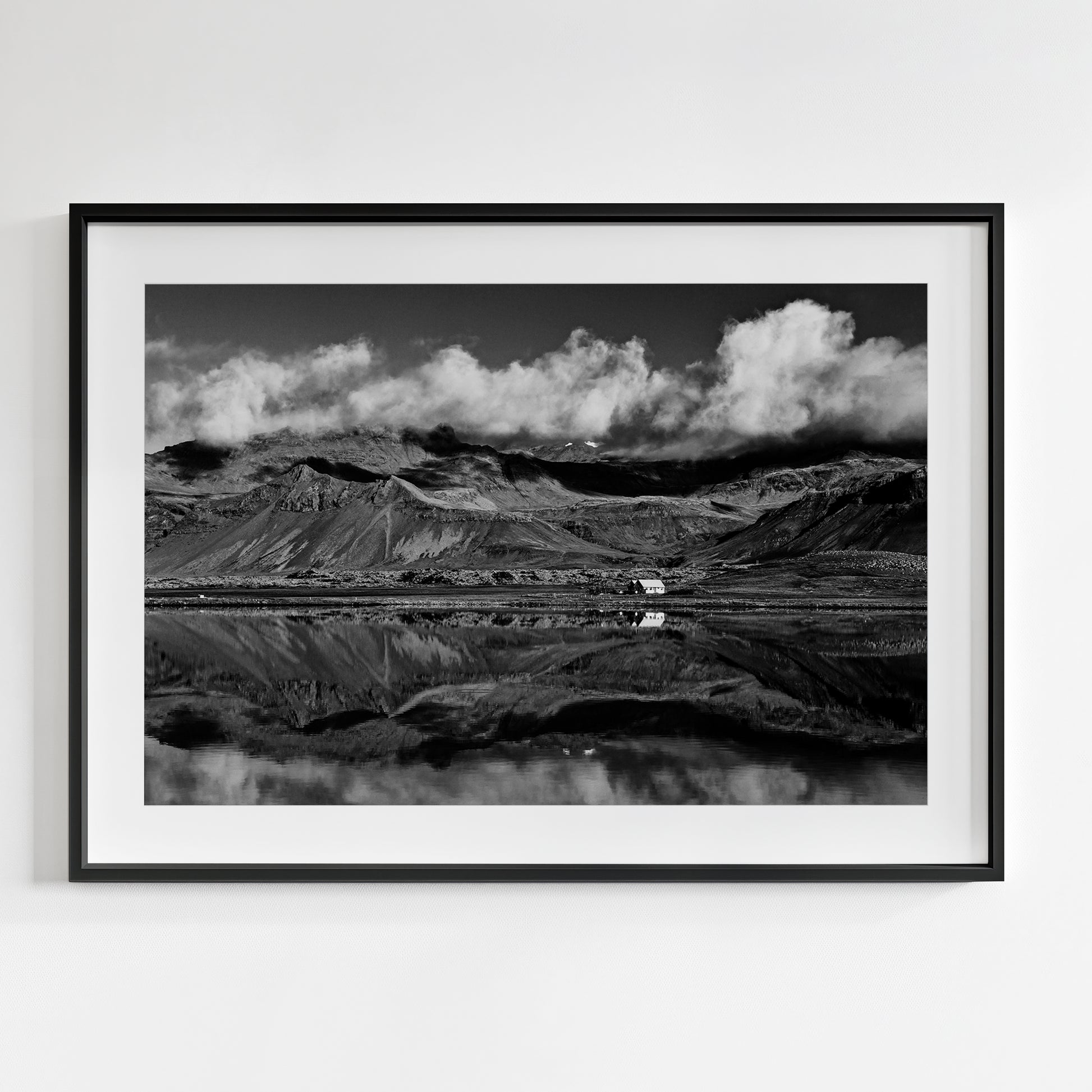This series strips away color and forces the viewer to confront the raw geometry and profound emotional weight of both the earth and the structures built upon it. By eliminating the visual chaos of the modern palette these works achieve a timeless psychological clarity. The resulting images are deeply atmospheric transforming simple architectural scenes like Little House or monumental forms like Black Church into enduring visual icons defined purely by light and shadow.