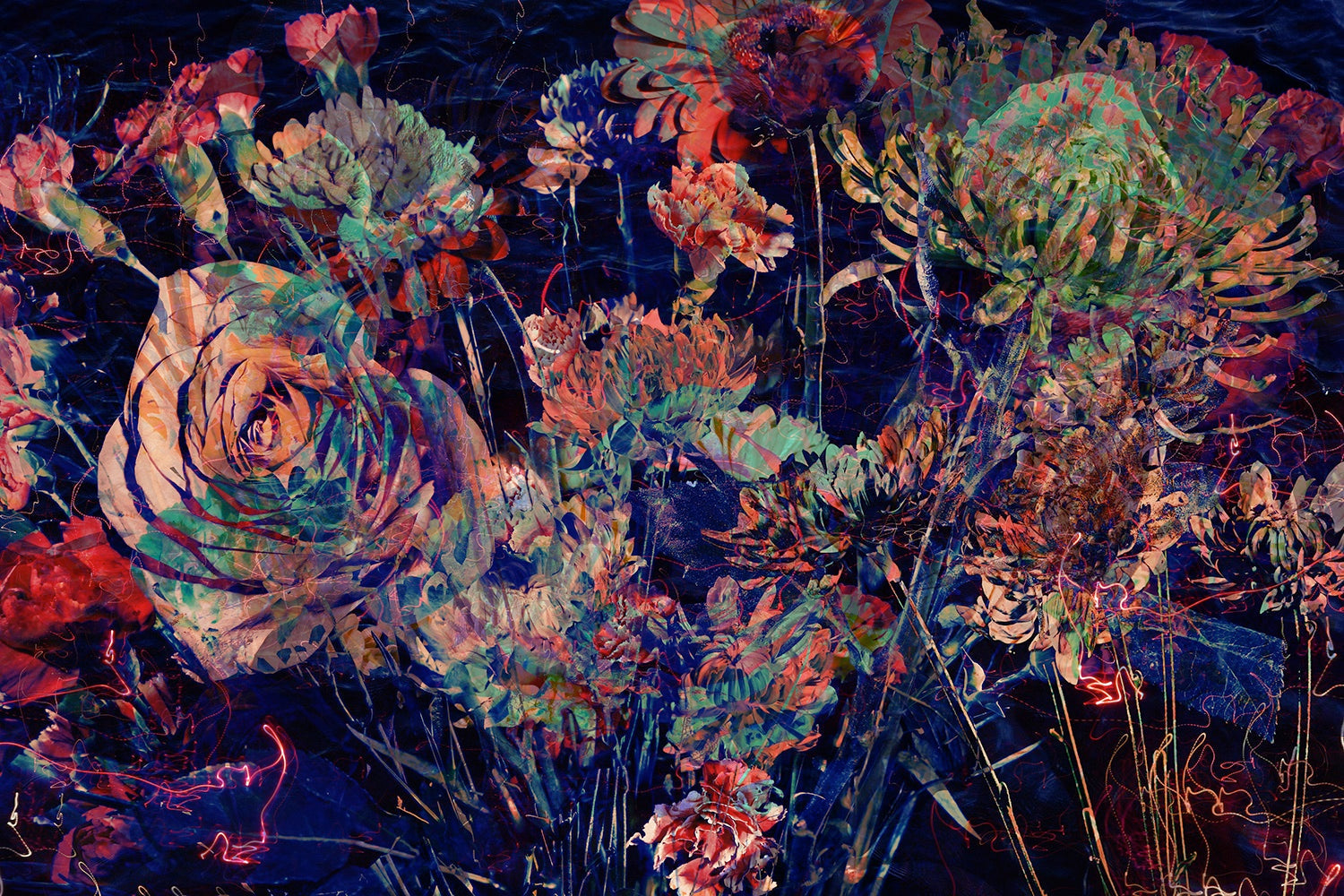 Through a rigorous process of layering hundreds of photographs, the works become saturated, dense emotional statements. This technique captures not just an image, but a composite of time and feeling, celebrating the breathtaking, dizzying high of new romance while simultaneously acknowledging the inherent vulnerability woven into every new moment.