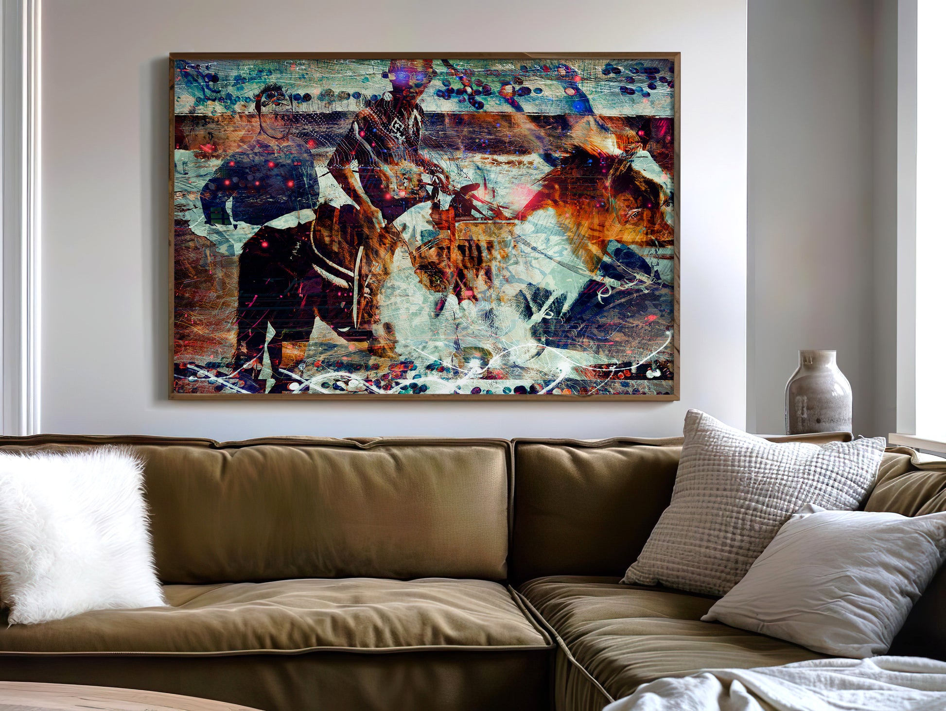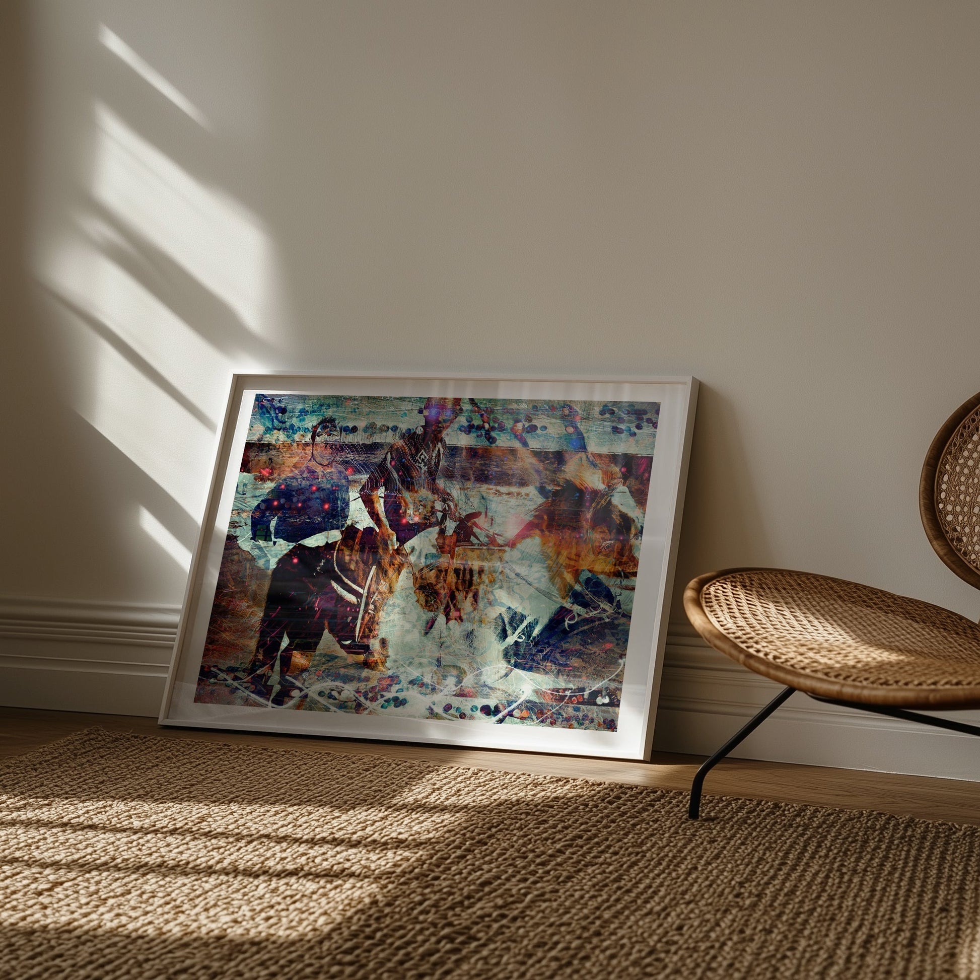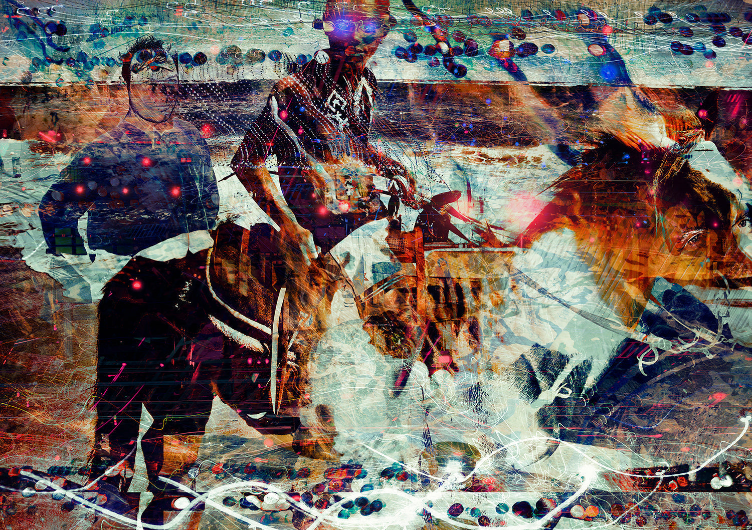This work explores how ghosts from our past relentlessly penetrate our dreams. The artwork is saturated with a warm, metallic copper light, giving the scene a feeling of ancient memory and psychological intensity. Lev builds a reality where he has intentionally placed himself as the figure just behind the horse, positioning the creator as the silent witness to the emotional force and speed of his own subconscious past. This piece is a meditation on memory and the way yesterday's events ride hard into the present.