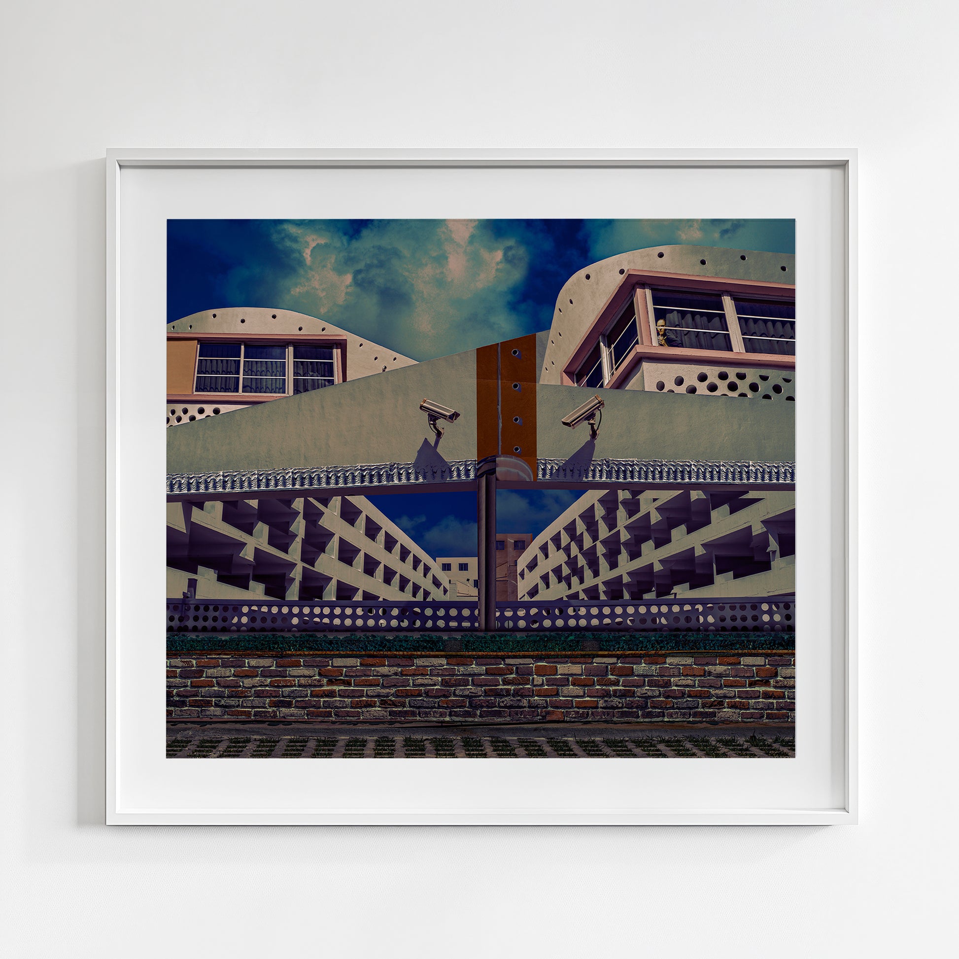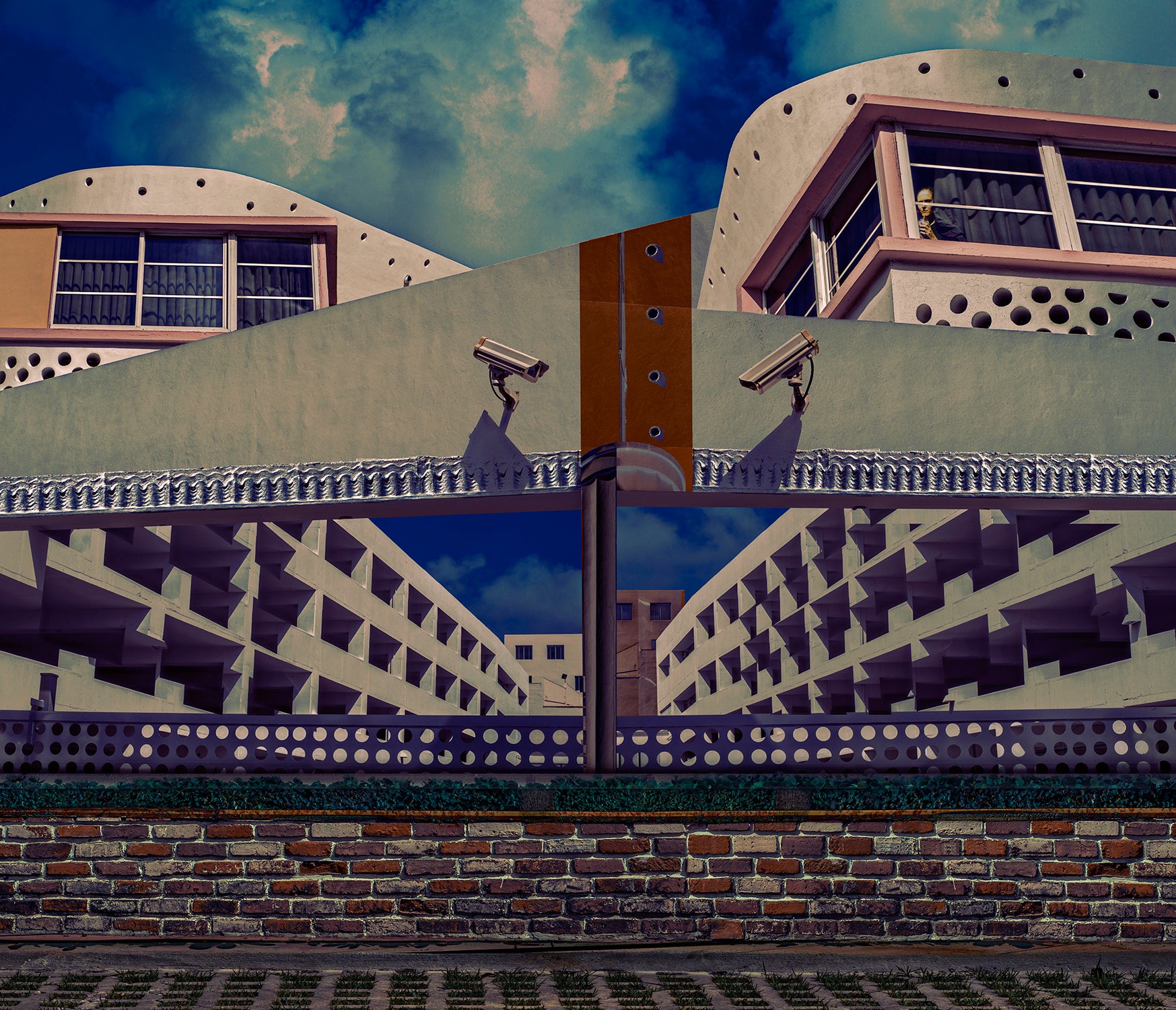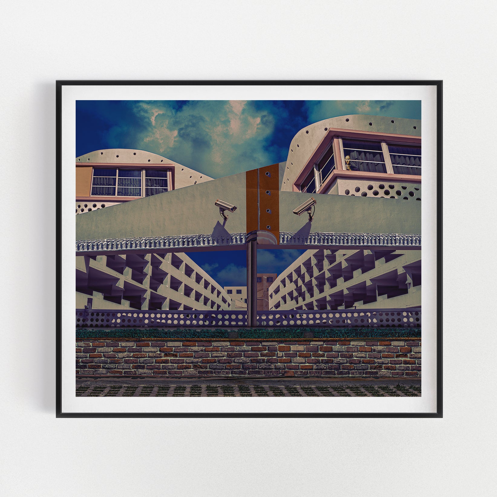 This series is a deconstruction of the built world, seeing buildings and public spaces not just as structures, but as silent, monumental characters. Just like Lev's other work, this series uses the complex process of layering countless photographs to reimagine familiar settings like a fictional roadside stop, Service Area #1, or a nostalgic view, I Met Edward Hopper, into highly charged, new realities. These pieces focus on the geometry, the history, and the quiet drama hidden in the irony of human life. What does the entrance to heaven look like? Could these be the Pearly Gates?