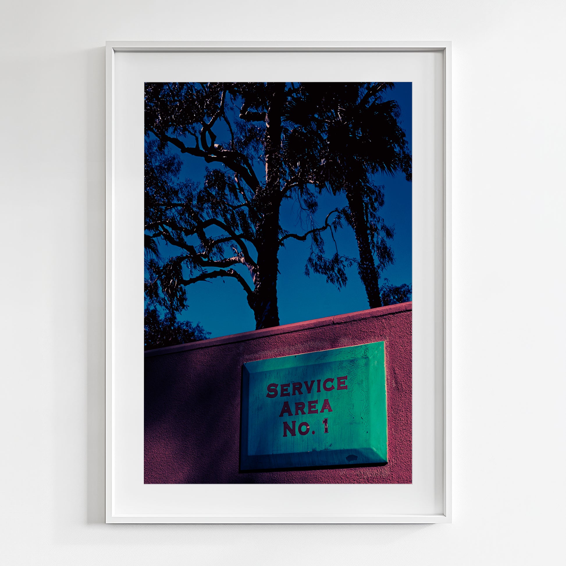 In "Service Area #1" Lev takes this familiar roadside architecture and turns it into a visually charged, complex reality. The title itself is a sharp, witty metaphor for going inside one's own self to seek answers to life's important questions. The ultimate journey is internal, and the piece suggests that true, "eternal" replenishment isn't found externally, but through the hard, essential work of self-service.