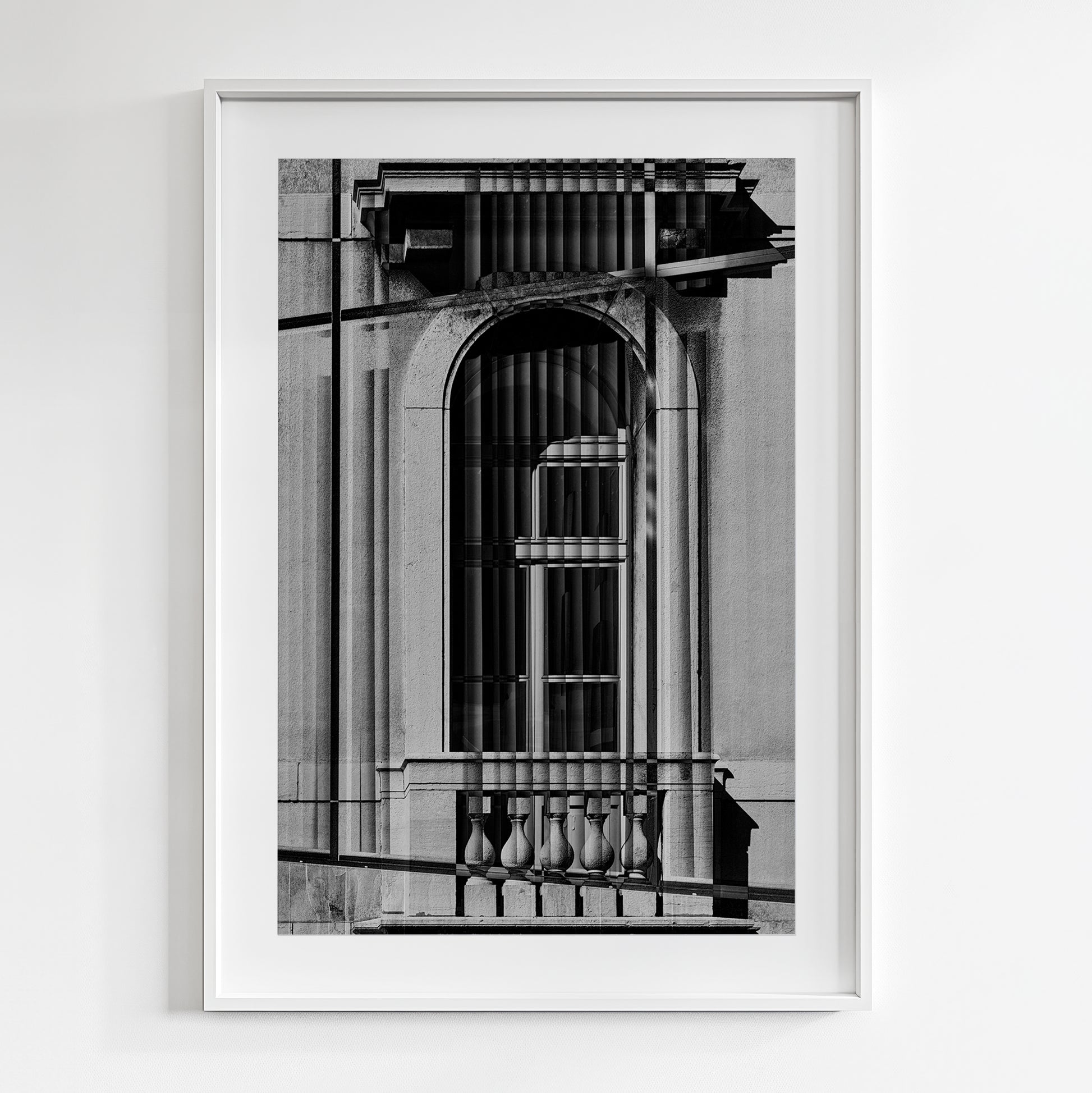 A study of time and human existence. The artwork merges a contemporary window with a 500-year-old architectural frame, effectively collapsing centuries of history. This creates a quantum leap into the visual drama of a city built on water, a substance that is in constant flux. It is also a commentary on the nature of human time - there is no past or future - the present contains all time.