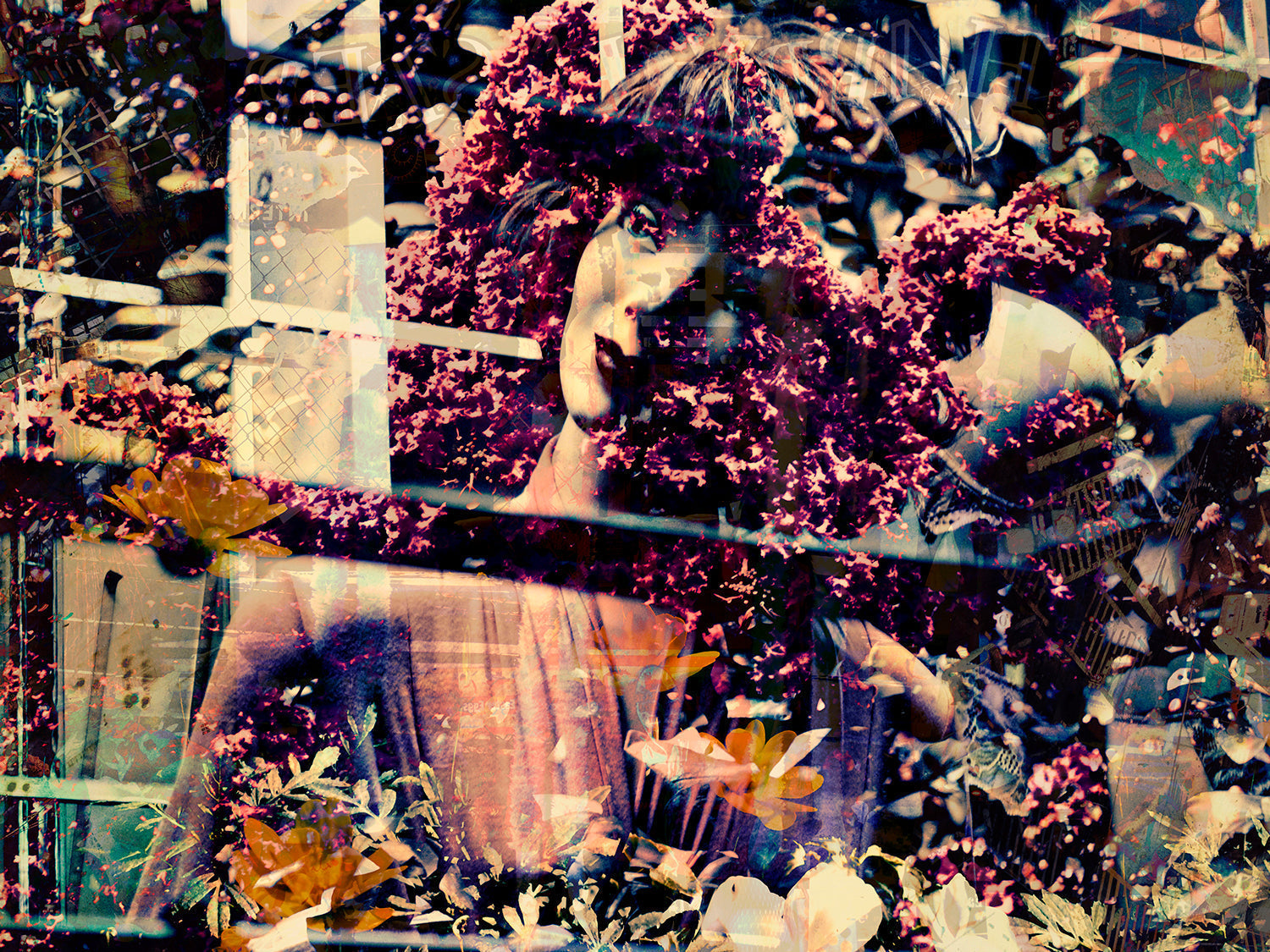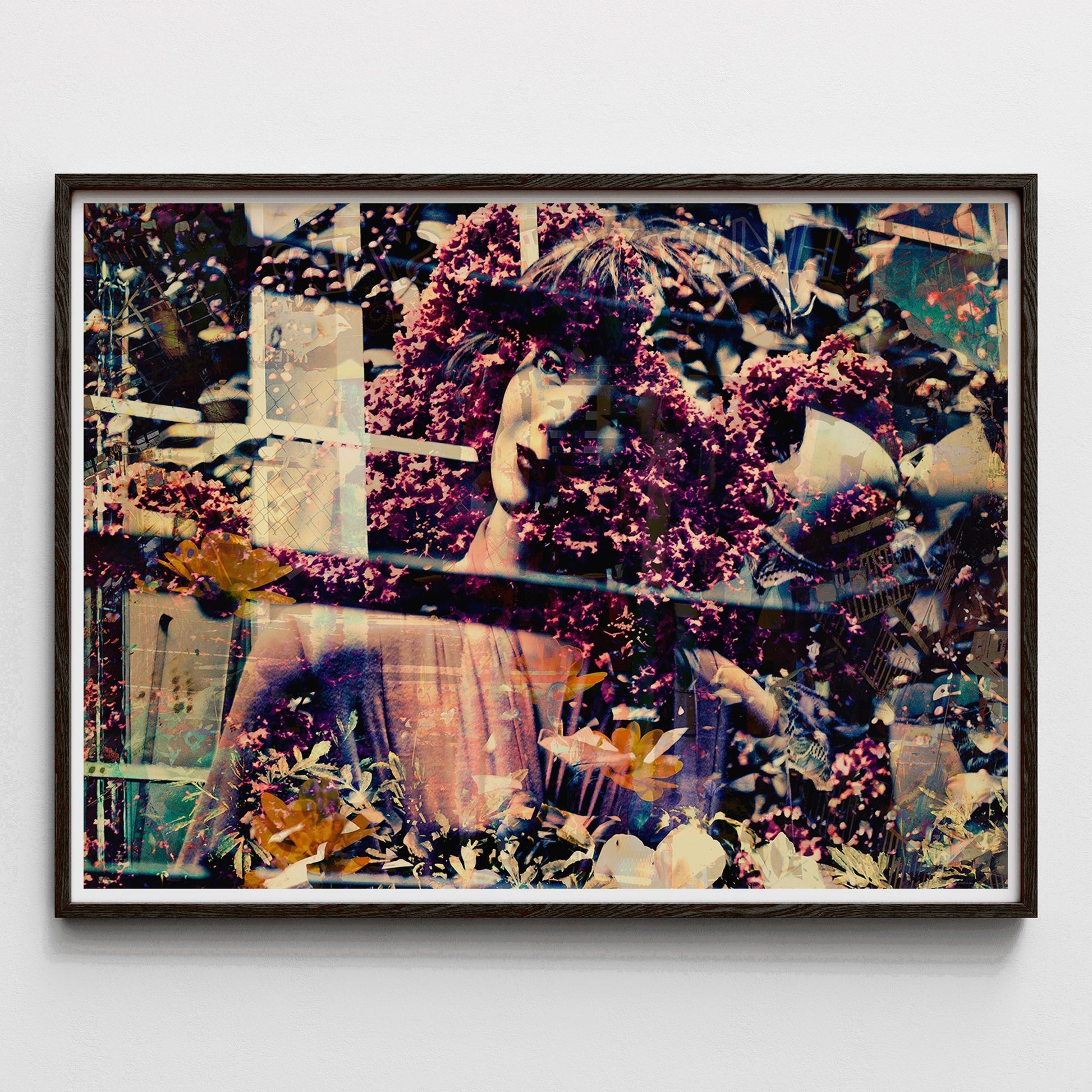 This series is an unedited, adrenaline-fueled conversation with chaos; a direct commentary on how completely we are immersed in pop culture. The pieces race a thousand miles a minute from the subconscious and explode into our conscious. Lev layers hundreds of carefully selected photographs to create vibrant cross-sections of the modern psyche, a dense architectural mapping of thought and digital noise.